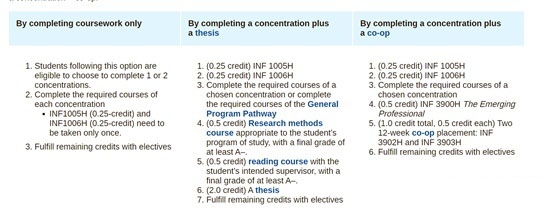 学生可以选择两种学习途径,一种是可以从以上7个Concentration中选择一个自己喜欢的方向Concentration pathway;另外一种是General Program pathway。无论选择哪一种学习途径(Program Pathway),学生都可以决定自己的学位是授课型、研究型还是带薪实习(Co-op)类型的。