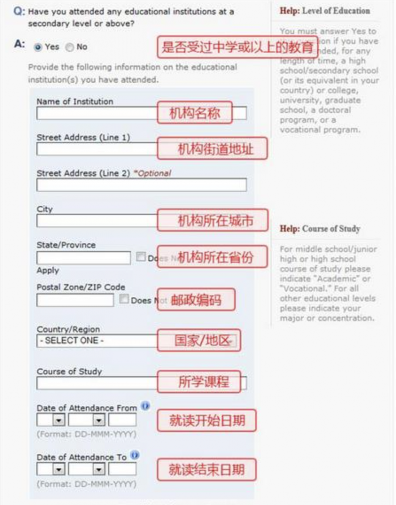 美国访问学者签证DS160表的Education项一般要从中学开始填写,例如您的学历是大学本科,填写Education项时需要从高中开始填写。一些高学历的人员,如硕士、博士等,可以从大学开始填起。