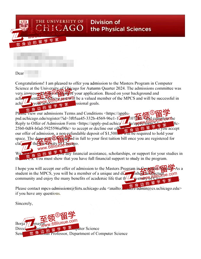 录取结果:University of Chicago,Masters Program in Computer Science 芝加哥大学计算机科学硕士录取