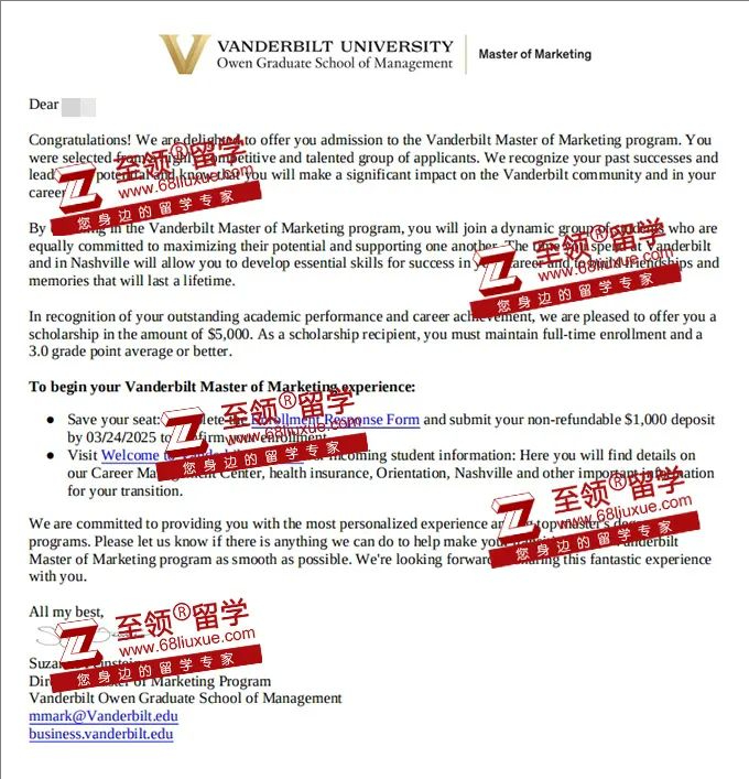 录取结果:范德堡大学,市场营销硕士录取+ $5000