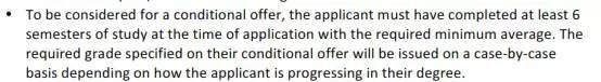对于Con-offer的申请条件, 申请者必须至少完成6个学期的学习。