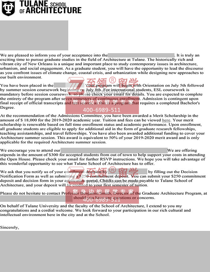 录取结果:Tulane University杜兰大学,Master of Architecture I (3.5-year track) 建筑学硕士,奖学金+$27,000/y