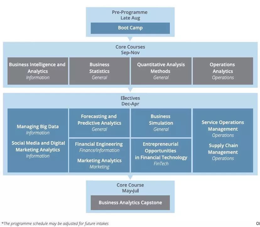 要从商业分析项目毕业,学生需要完成总共十门6学分课程(60学分),包括: